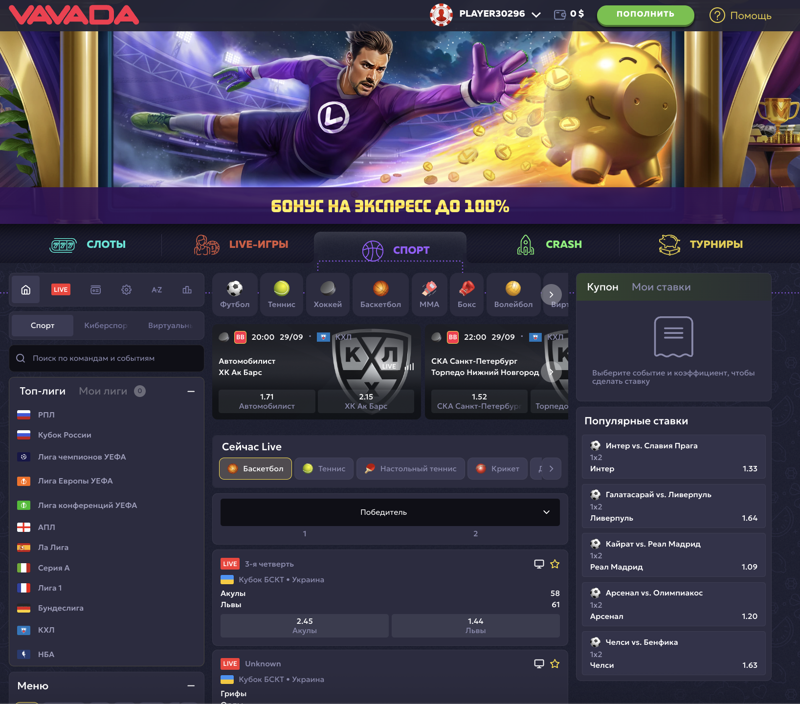 Таким образом, спортивная платформа Vavada сочетает в себе широкую вариативность рынков, актуальные коэффициенты и современные инструменты для live-ставок, формируя комфортные условия как для новичков, так и для опытных бетторов.